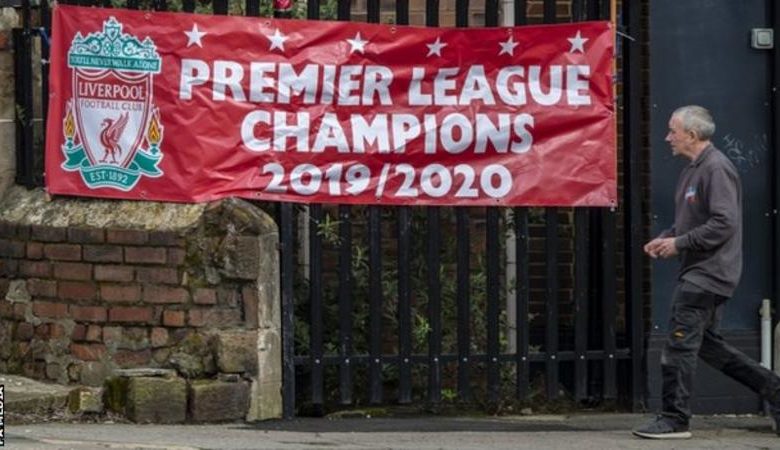 With football in England suspended until at least 30 April, Liverpool has a 25-point lead over defending champions City and are two wins from a first top-flight title in 30 years.