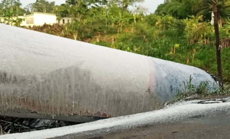 Some eyewitnesses said upon reaching Osamkrom Prison junction, the commercial vehicle fell into a ditch after the gas tanker landed on it.