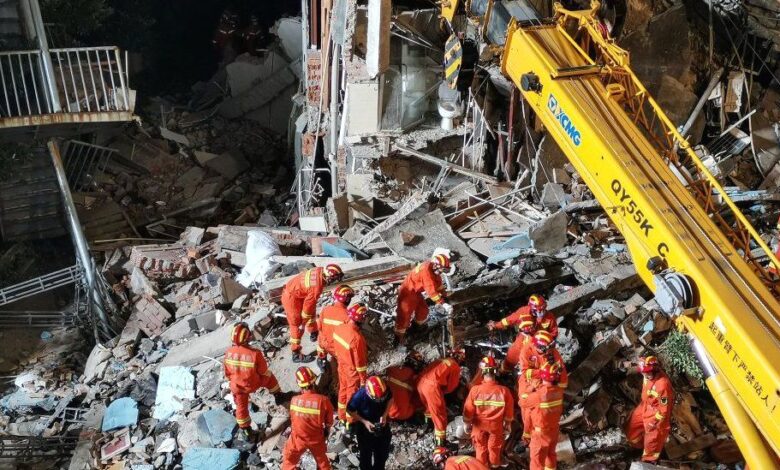 The collapse of the Siji Kaiyuan Hotel in Suzhou happened on Monday afternoon at 15:33 local time (07:33 GMT). More than 600 rescue workers were deployed to the scene.