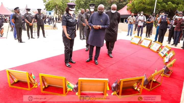 Wreaths were laid by the Vice President, the Inspector-General of Police, a representative of the Ga Mantse and one of the widows, on behalf of the country, the Police Service, the traditional authorities and the bereaved families respectively.